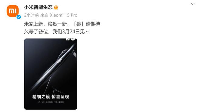 每经AI快讯,欧博 小米智能生态官方微博3月23日宣布:“米家上新,欧博娱乐焕然一新,欧博allbet「镜」请期待。久等了各位,欧博百家乐我们3月24日见。”